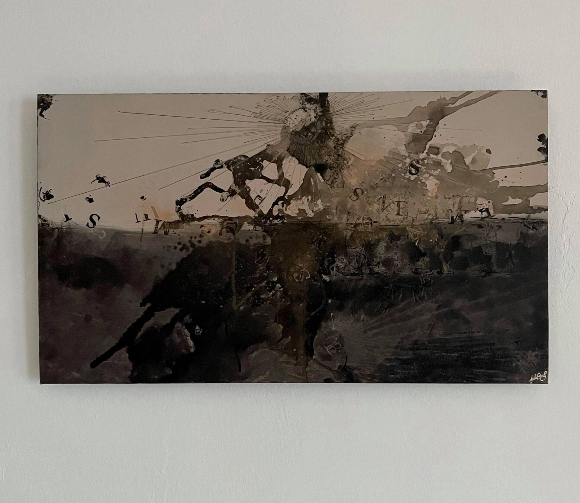 Composition typographique, Peinture acrylique et à l'alcool, touches de résine